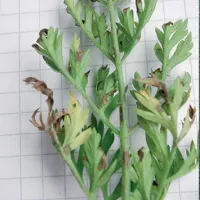 Belirtileri: Yaprak ayasının (genellikle V biçimli) solan kısmı, sap tabanındaki damarlarda gri veya kahverengi renk bozukluğu (boylamasına kesildiğinde).